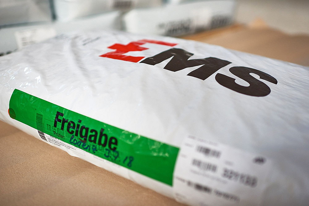 Schmelzflussprüfung, Restfeuchtebestimmung und Glührückstandsmessungen an allen Rohstoffen.