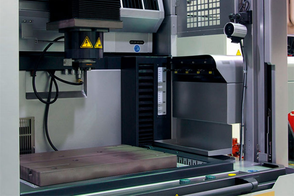 Zukunftsweisend sind unsere neueren Anlagen. Sie sind zum Beispiel mit Elektroden und Werkstückwechsler ausgerüstet und somit automatisierbar für eine mannlose Fertigung.